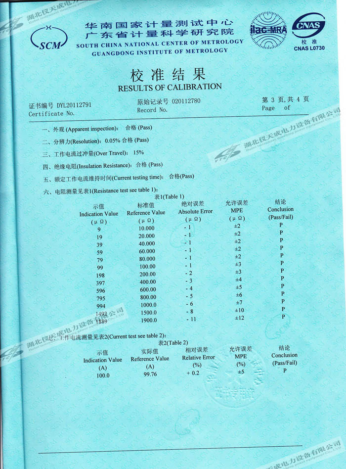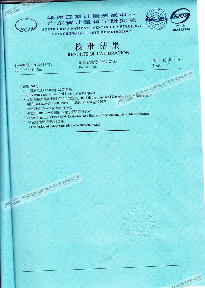 轉(zhuǎn)載:"YTC5501-100A 回路電阻測(cè)試儀的資質(zhì)證書" 請(qǐng)注明來(lái)源于儀天成電力。 更多技術(shù)問題請(qǐng)致電儀天成電力客戶服務(wù):027-87876585,技術(shù)部專線:027-87876585,在線客服:719388481
